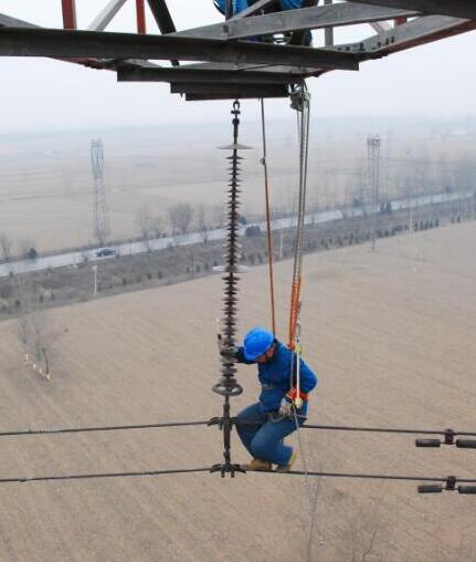電力設施檢修電力工人攜帶鋁合金手扳葫蘆檢修作業...